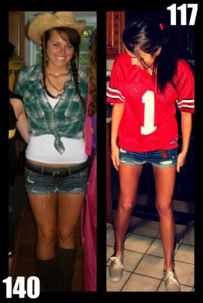 It's hard to believe but this girl lost more than 111 lbs (50 kg) over one year. She used to weigh 214 lbs (93 kg), then she went to 103 lbs (47 kg) and realized that this weight loss was to extreme for her and she looks very skinny and unhealthy. So now she is trying to gain back some weight.